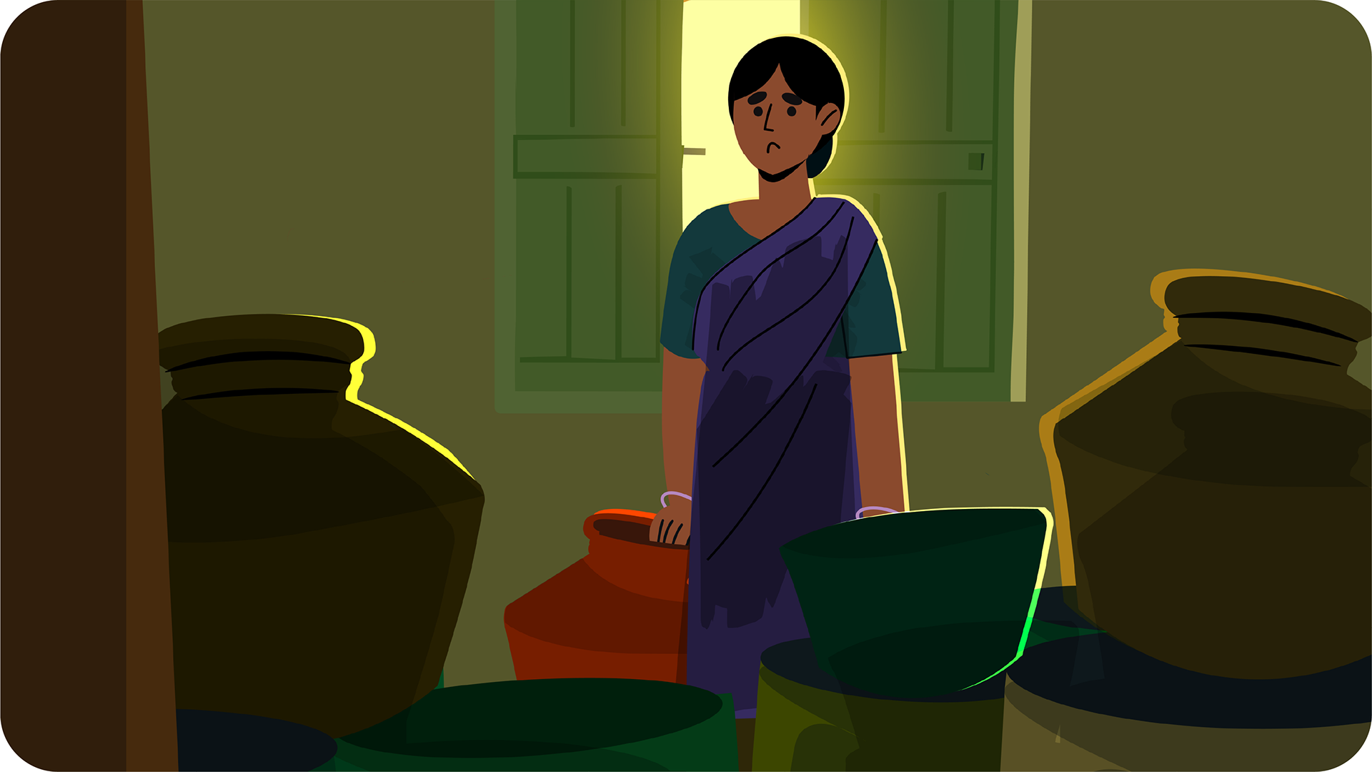 Created a complete colour script and visual storyboard establishing composition, colour, lighting, and atmosphere, with a visual shift from dark, muted scenes to bright, clean environments representing improved hygiene and dignity.