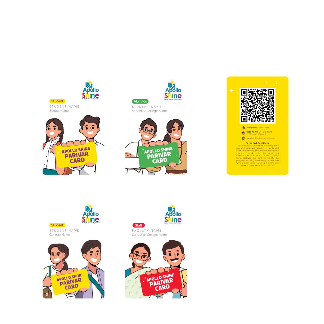 Developed by the Apollo Shine Foundation, the Parivar Card is a healthcare privilege program designed for students, alumni, and staff across schools and colleges, offering access to trusted healthcare services through partner hospitals and brands at preferential rates.