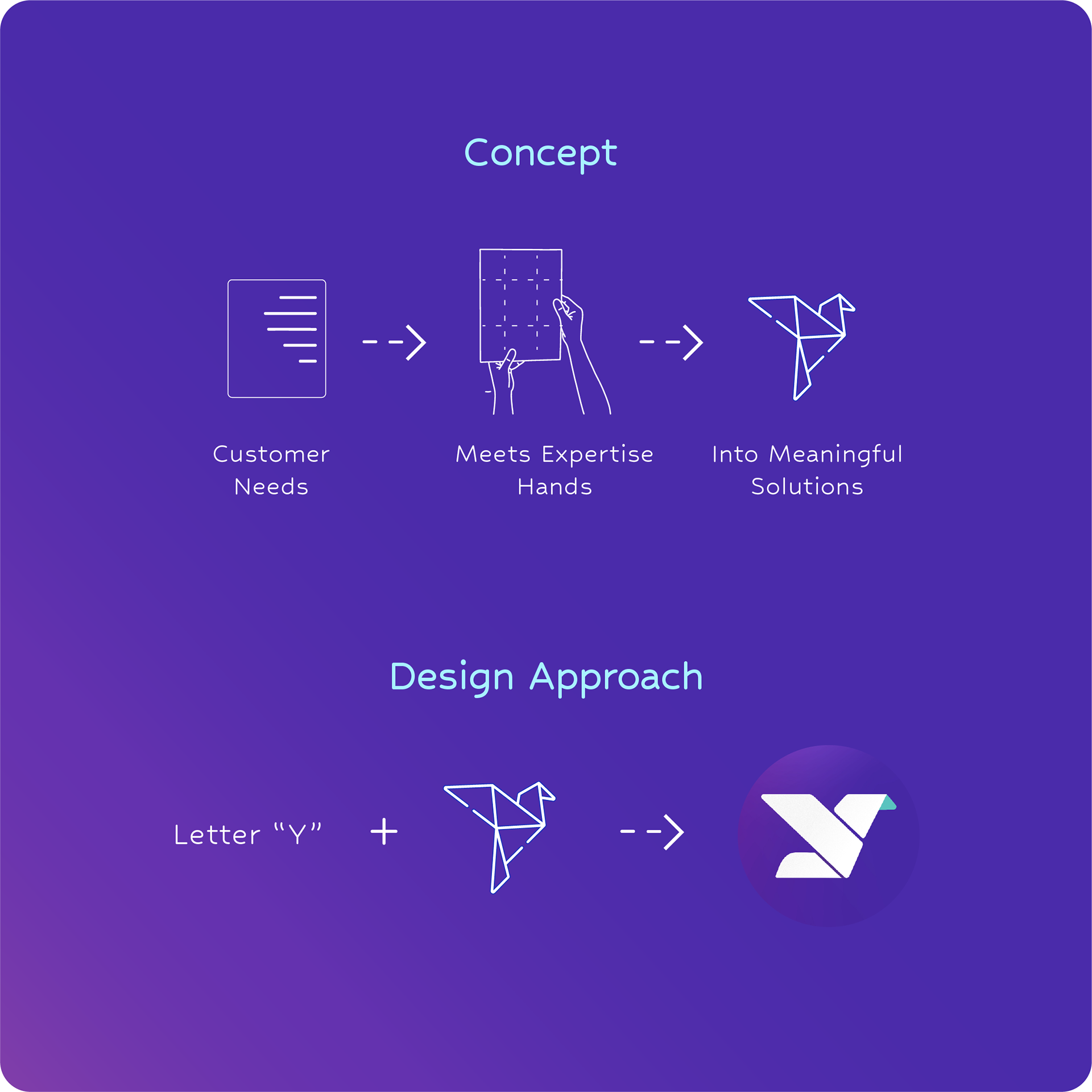 The logo features an origami bird forming the “Y” in Yudeekshaa, symbolizing transformation and flexibility. Inspired by origami’s ability to take multiple forms from a single sheet, the mark represents the brand’s capability to shape tailored solutions based on diverse client requirements.